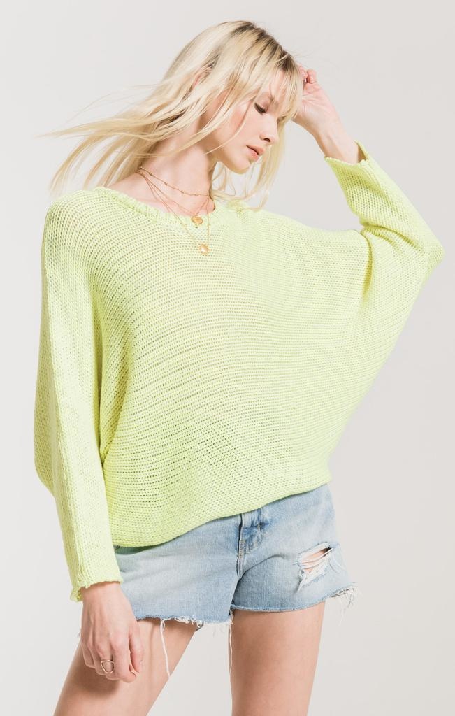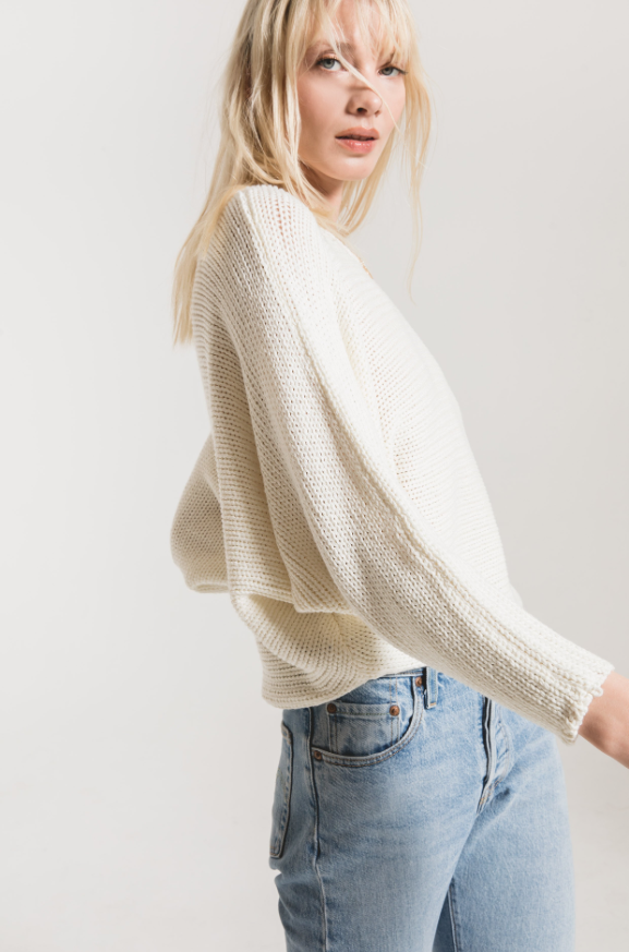 Crewneck sweater with big, chunky knit featuring a slouchy silhouette and drop shoulder inseem.