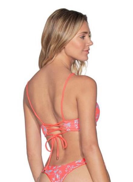 One bikini top, two unique looks. The coral Reef rocks is a bralette swim tip that's solid on one side and reverses to a cute floral print on the other. Features removable soft cups for lift and support.