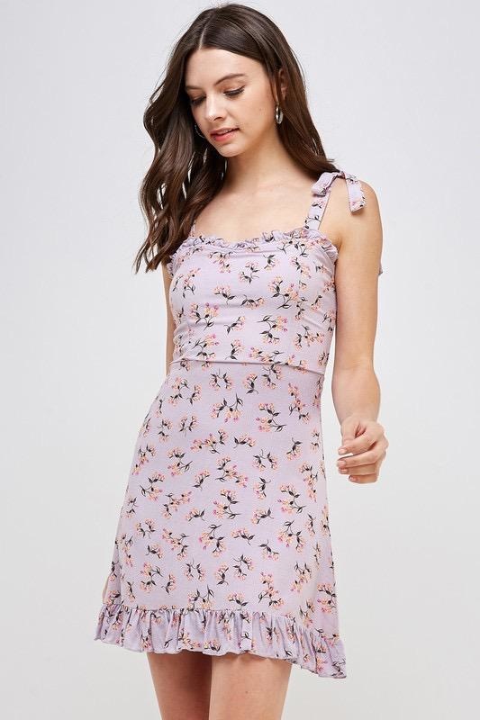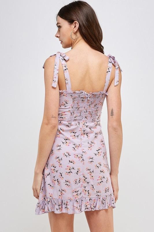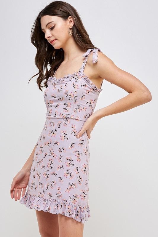 Sweetheart Floral Dress With Tie Straps