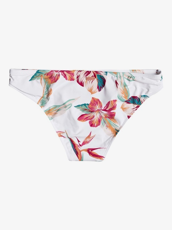 Technical Features Fabric: Soft, resistant stretch fabric Coverage: Regular coverage Closure: Fixed closure Rise: Mid rise waist Rubber ROXY plaque Ruching detail on sides Composition 87% Nylon, 13% Elastane